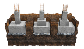 V případě nekoncentrovaného zatížení je vhodnější jako typ plošných základů využít základové pasy nebo desky.