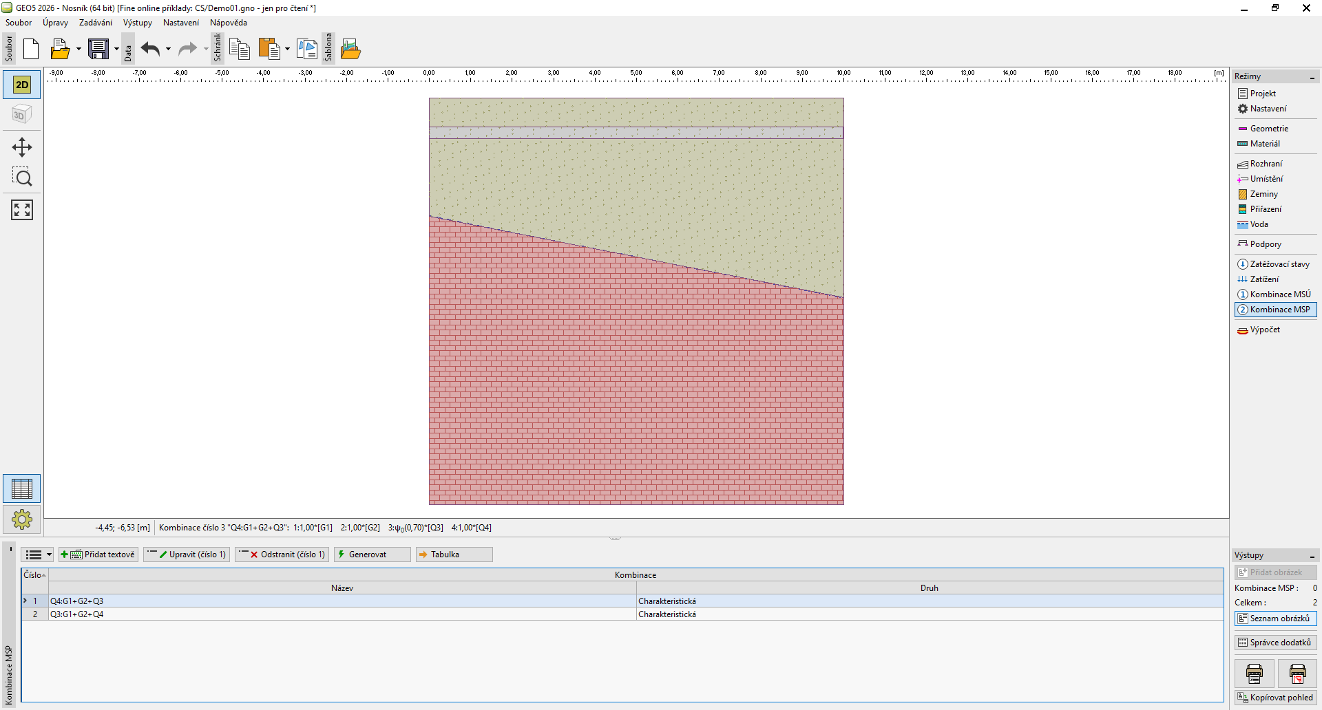 Rám "Kombinace MSP" obsahuje tabulku se seznamem zadaných kombinací mezního stavu použitelnosti. Přidání (editace) kombinace a jejich parametrů se provádí v dialogovém okně "Nová  kombinace zatěžovacích stavů". Editaci lze provádět pomocí tlačítka "Upravit", nebo kliknutím levého tlačítka myši na řádek v tabulce s požadovanou kombinací.