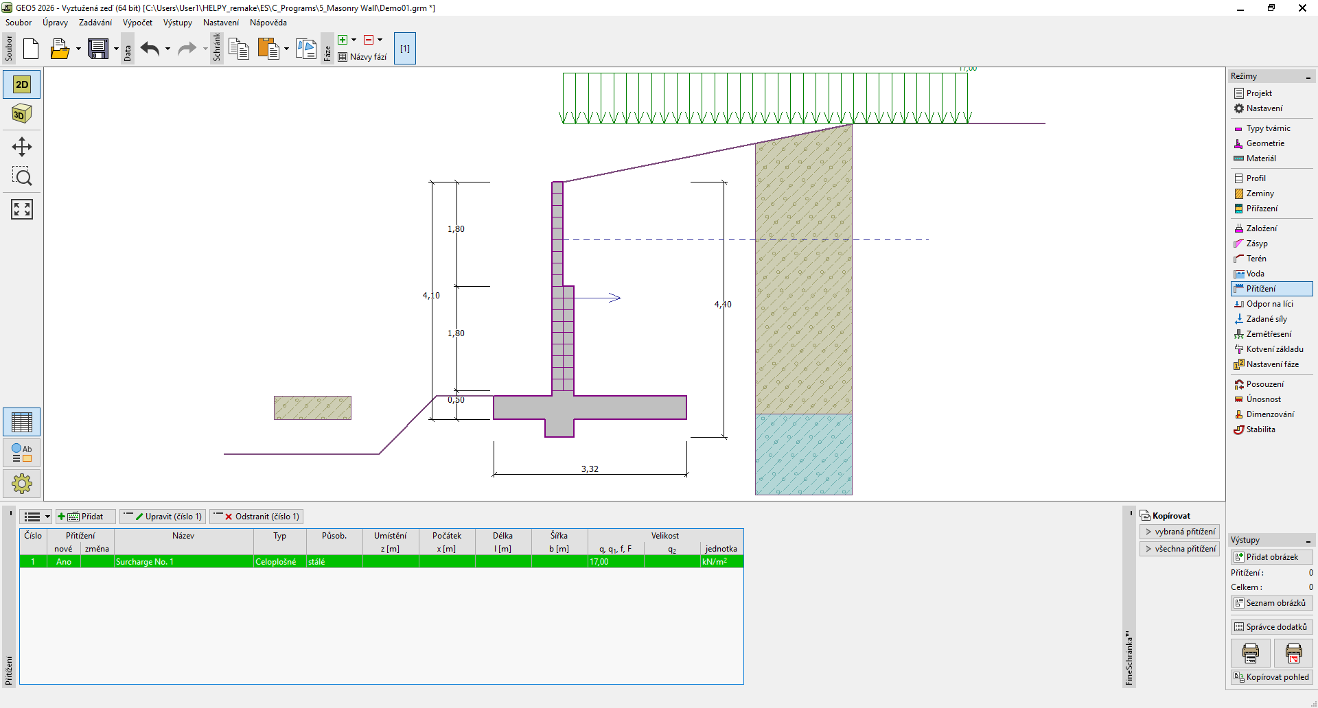 Výpočet zemních tlaků od přitížení je popsán v teoretické části nápovědy "Vliv přitížení".