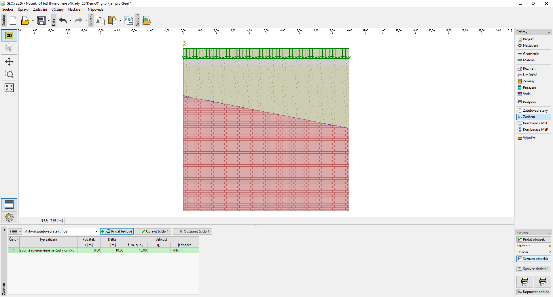 Každé zatížení je přiřazeno zatěžovacímu stavu. Výběr zatěžovacího stavu se provádí nad tabulkou v rozbalitelném seznamu "Aktivní zatěžovací stav".