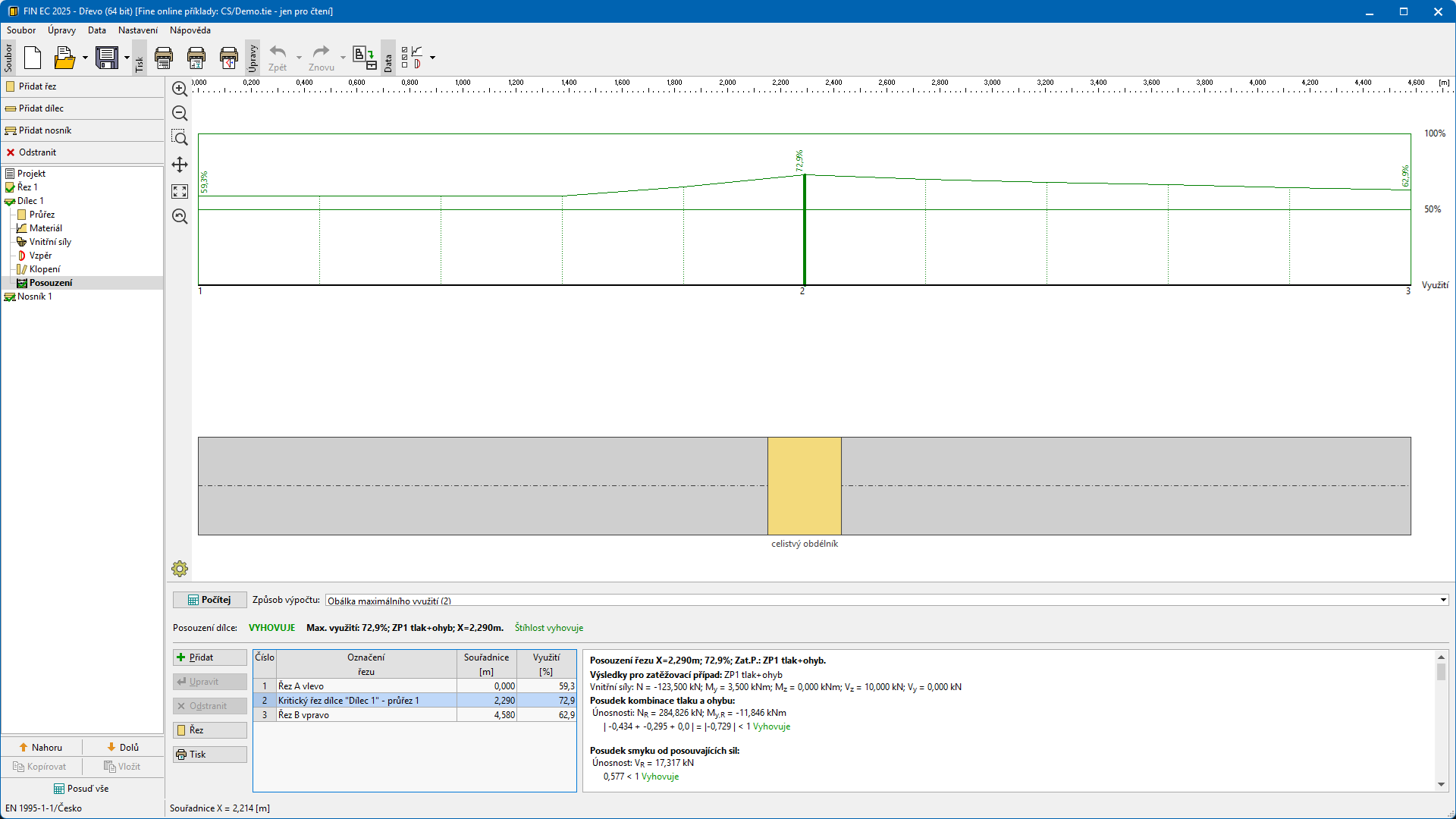 Oceňuji jednoduché, přehledné a rychle provedené posuzování prvků, ať už ručně zadaných vnitřních sil, spočtených samotným programem nebo importovaným z csv souboru.