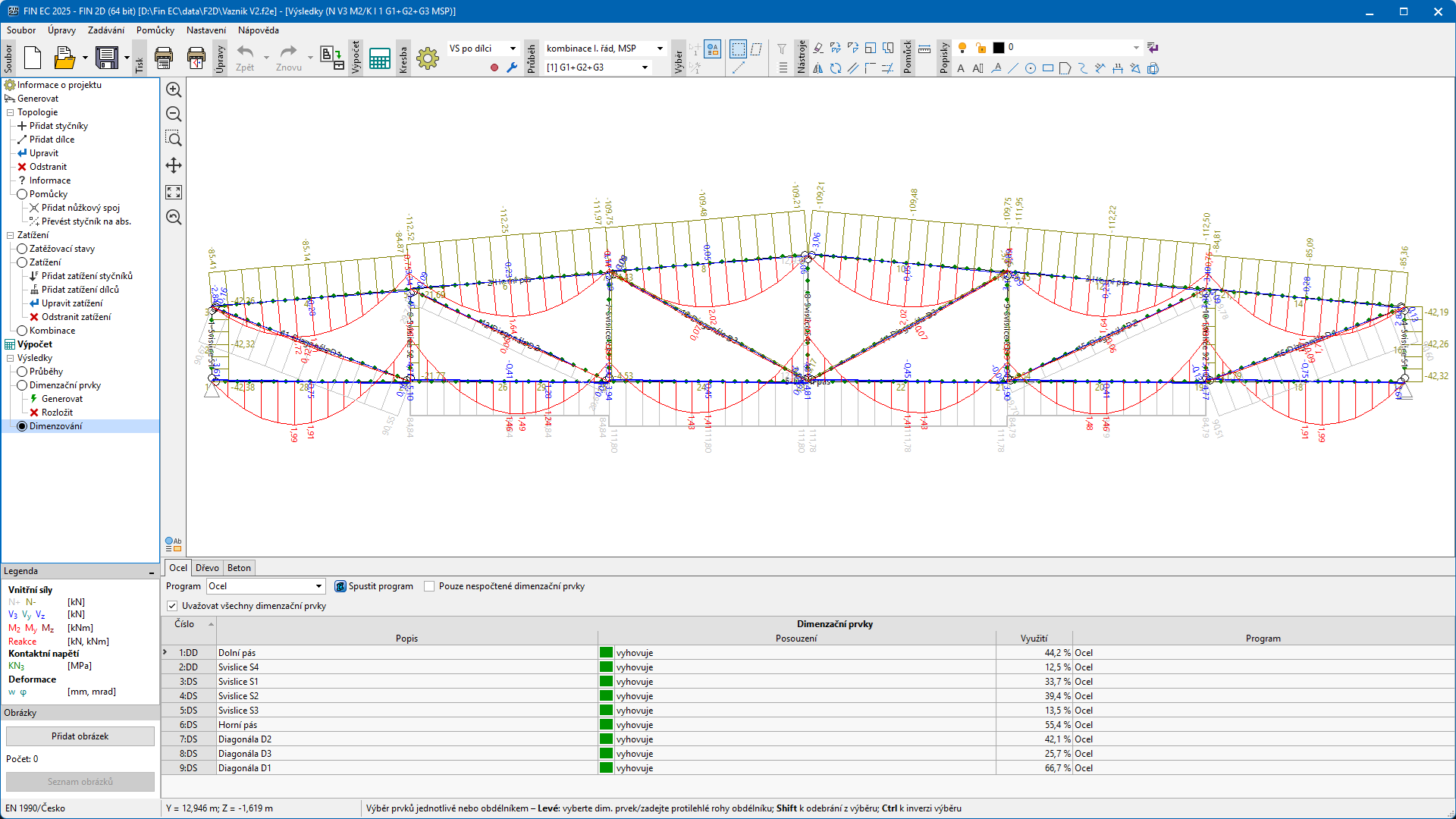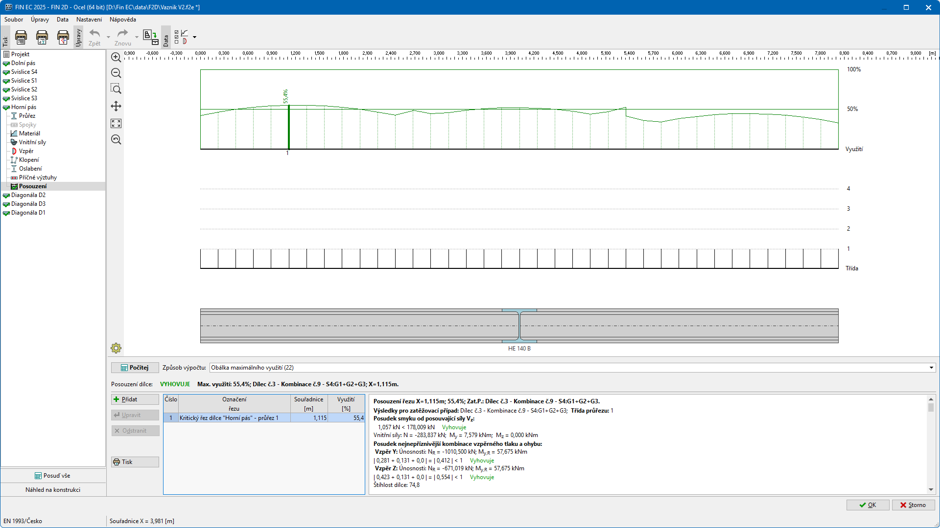 Oceňuji jednoduché, přehledné a rychle provedené posuzování prvků, ať už ručně zadaných vnitřních sil, spočtených samotným programem nebo importovaným z csv souboru.