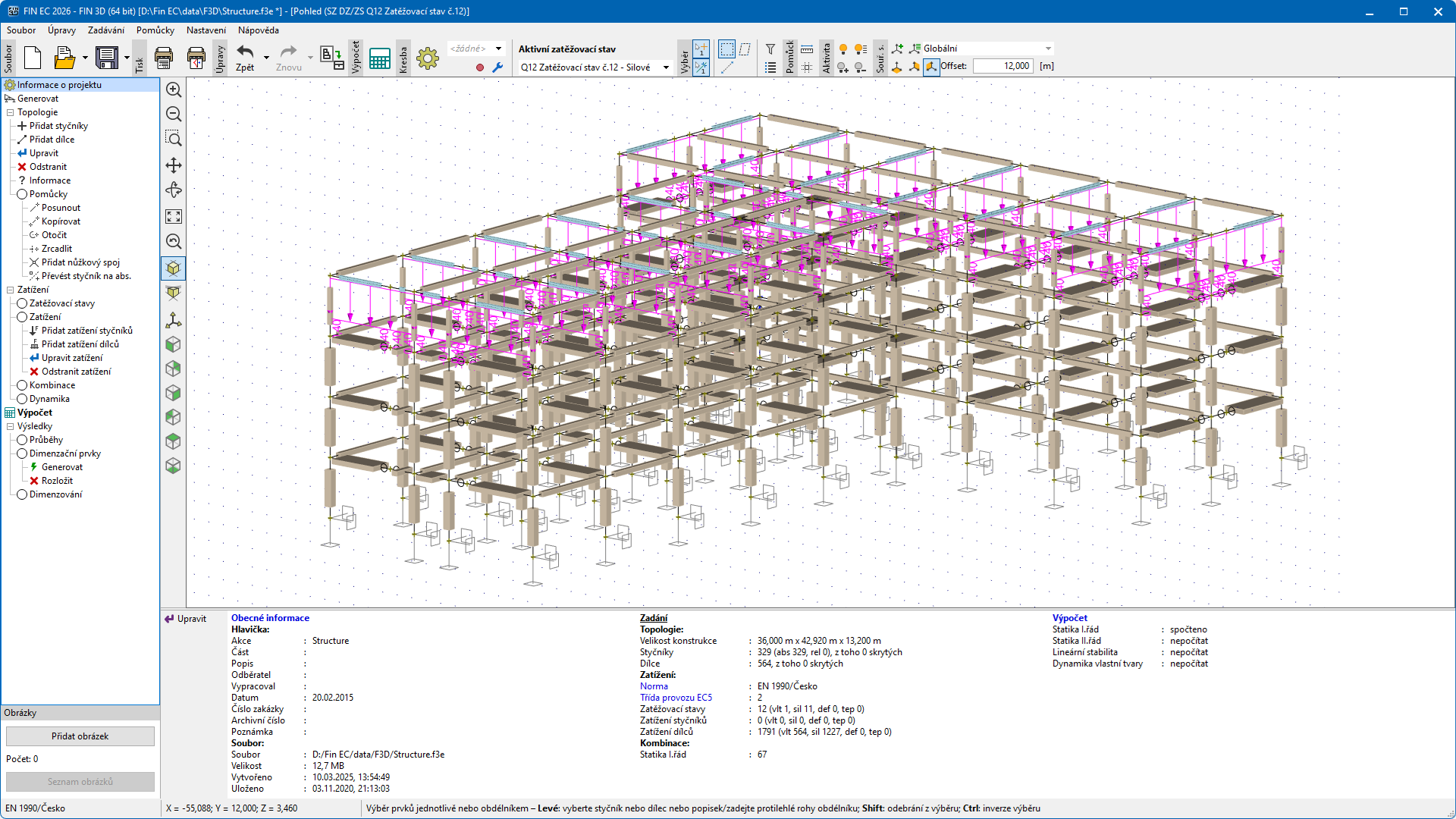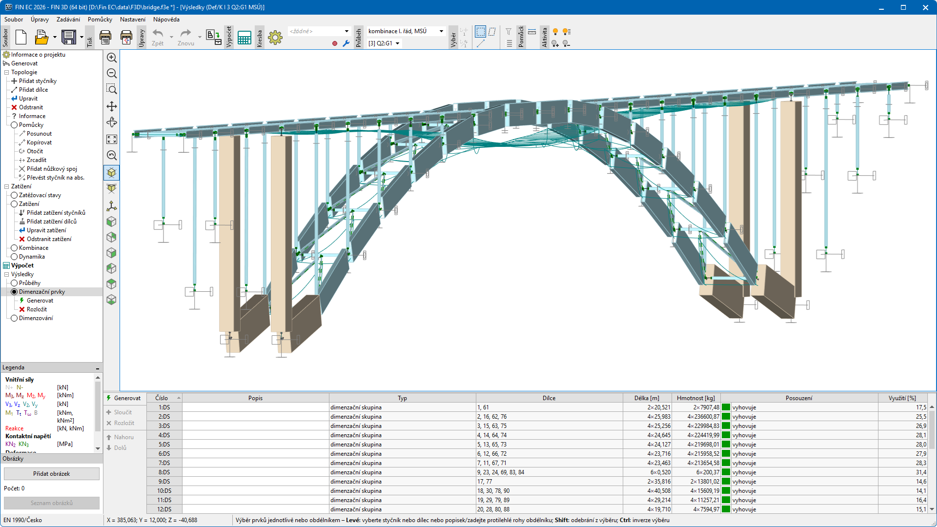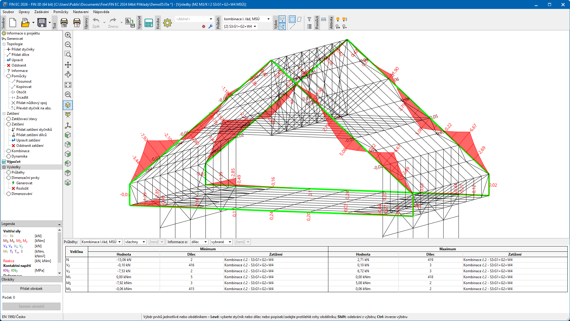 Program FIN 3D slouží k výpočtům prostorových prutových konstrukcí metodou konečných prvků. Program umožňuje snadné zadávání konstrukcí a přehledné zobrazení výsledků statické analýzy. Díky propojení s dimenzačními programy balíku FIN EC lze celou konstrukci v těchto programech posoudit a výsledky posouzení předat zpět do FIN 3D.