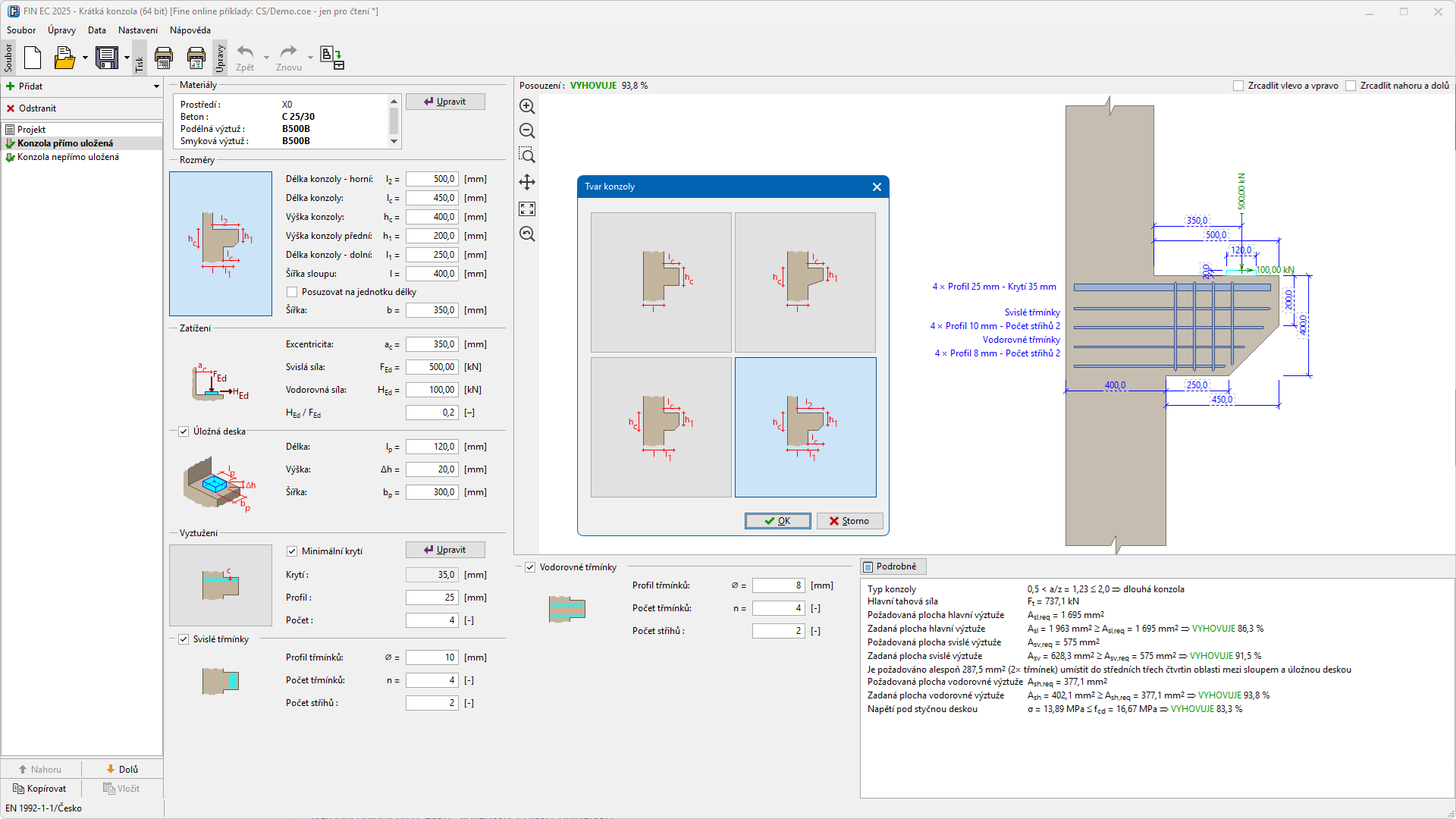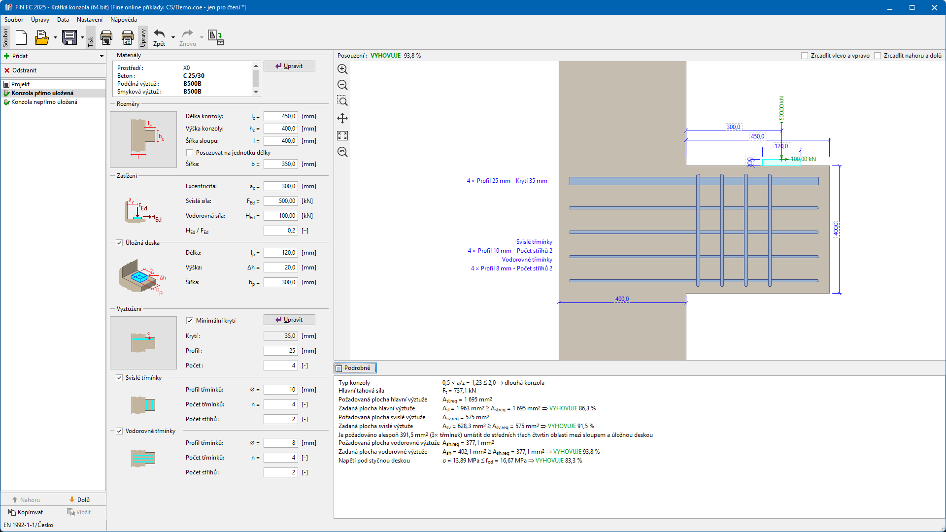Program provádí posudek přímo uložených (na sloupu) i nepřímo uložených (na průvlaku) konzol dle ČSN EN 1992-1-1 nebo ČSN EN 1992-2 (Eurokód 2). Pro posouzení je použita metoda náhradní příhradoviny. Výsledkem je minimální plocha hlavní tahové výztuže a minimální výztuž svislými a vodorovnými třmínky.