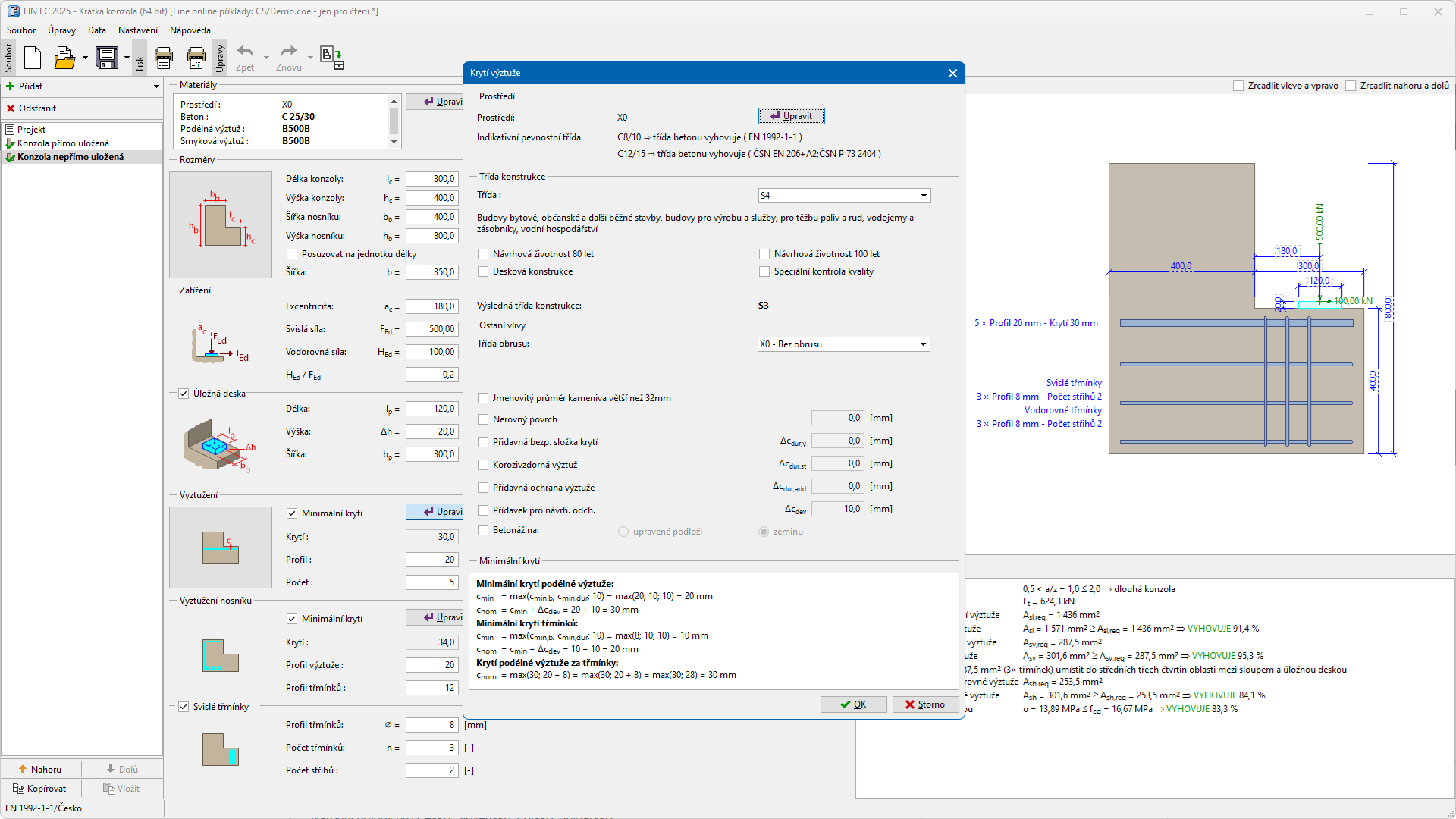 Oceňuji jednoduché, přehledné a rychle provedené posuzování prvků, ať už ručně zadaných vnitřních sil, spočtených samotným programem nebo importovaným z csv souboru.